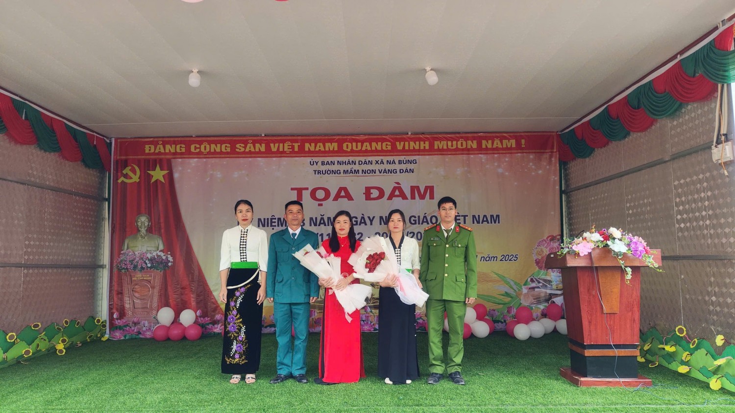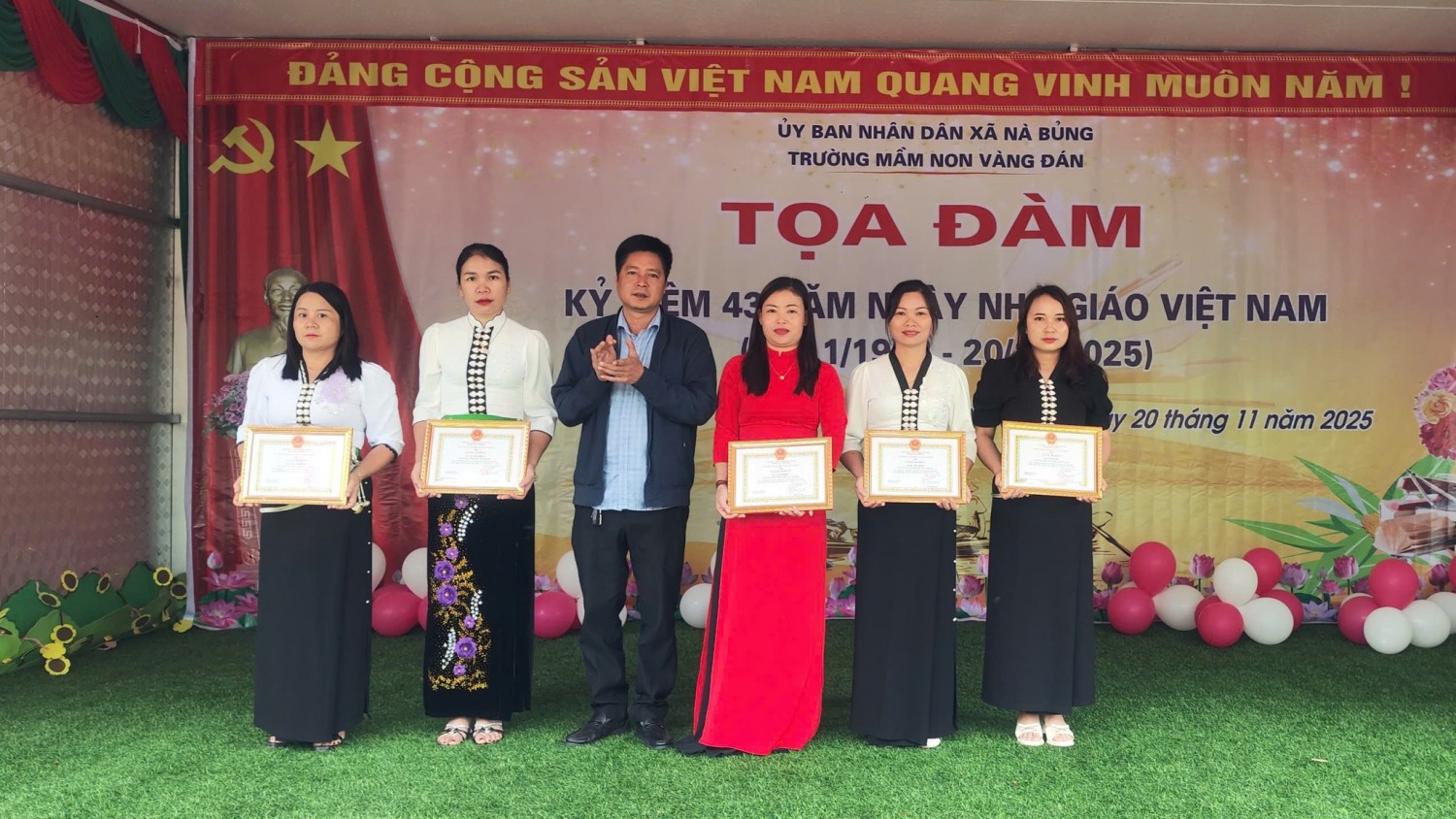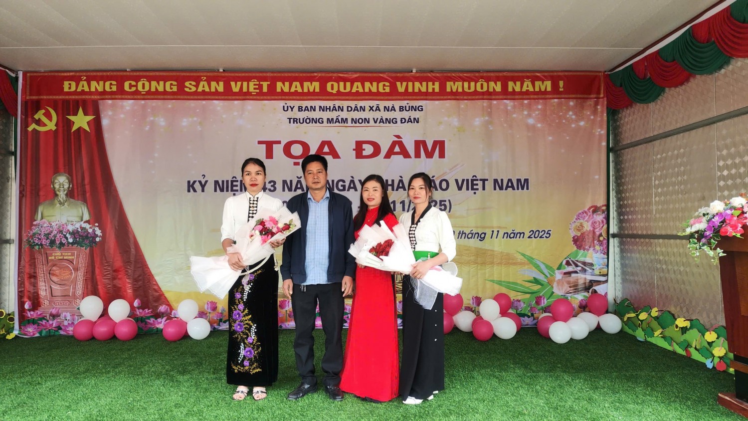 Ngày 20/11/2025, Trường Mầm non Vàng Đán tổ chức buổi tọa đàm kỷ niệm 43 năm Ngày Nhà giáo Việt Nam (20/11/1982 – 20/11/2025) trong không khí vui tươi, ấm áp. Đây là dịp để tri ân đội ngũ giáo viên mầm non – những người đã dành nhiều tâm huyết, tình thương và trách nhiệm để chăm sóc, nuôi dưỡng thế hệ trẻ của địa phương.